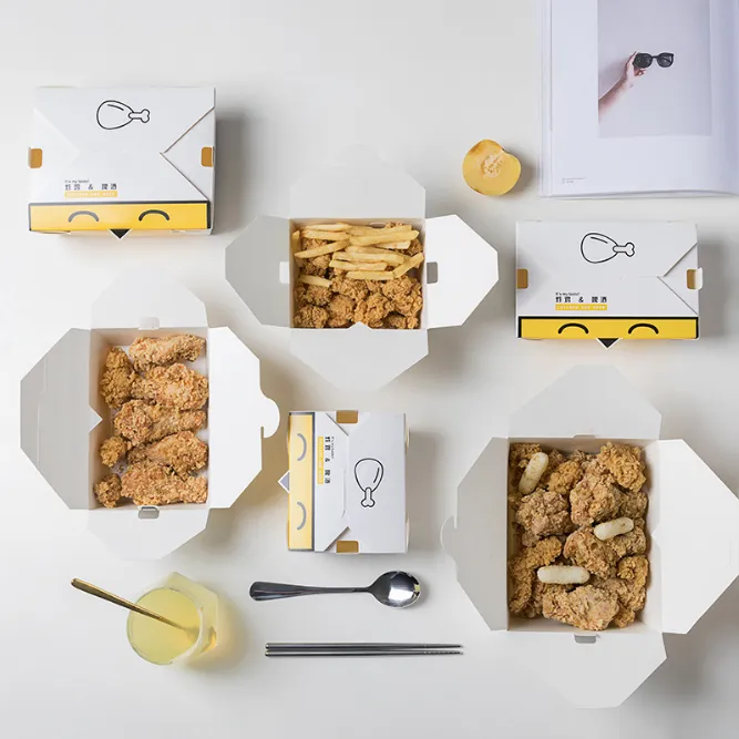 ফ্রাইড চিকেন বক্স হল এক ধরনের ভাজা চিকেন পেপার প্যাকেজিং ধারক যা বিশেষভাবে ফাস্ট ফুড শিল্পের জন্য ডিজাইন করা হয়েছে। ভাজা মুরগির বাক্সটি ফুড গ্রেড কার্ডবোর্ড দিয়ে তৈরি যা উচ্চ তাপমাত্রা এবং তেল প্রতিরোধী, জলরোধী এবং লিক প্রুফ, গরম এবং ঠান্ডার জন্য উপযুক্ত এবং প্যাকেজ করা সহজ। এটি একটি ব্যবহারিক ফ্রাইড চিকেন বাক্স যা ভাল সিলিং এবং নিরোধক, যা কার্যকরভাবে ভাজা মুরগির তাজাতা এবং তাপমাত্রা বজায় রাখতে পারে। Zemeijia কারখানা দ্বারা উত্পাদিত ভাজা মুরগির বক্স কাস্টমাইজড প্রিন্টিং সমর্থন করে এবং টেকআউট, ক্যাটারিং এবং পার্টি দৃশ্যের জন্য উপযুক্ত।