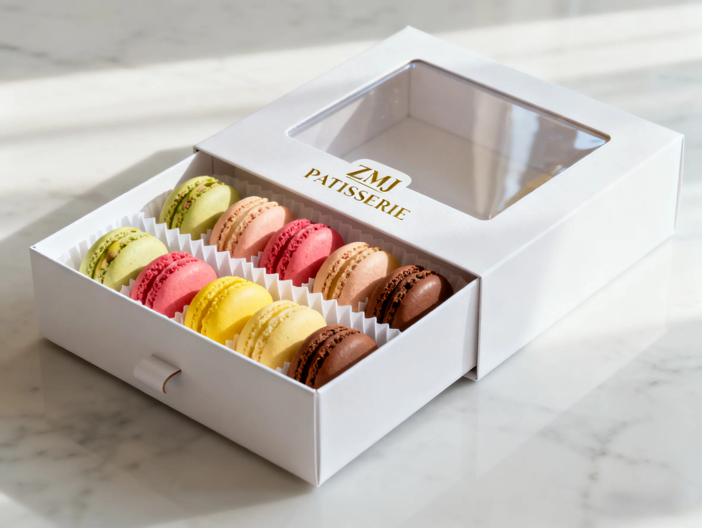 আপনি macarons জন্য প্যাকেজিং বাক্স খুঁজছেন? ZMJ প্যাকেজিং কাস্টম-প্রিন্ট করা ম্যাকারন উপহার বাক্স অফার করে। প্রতিটি বাক্সে অন্তর্নির্মিত কুশনিং সন্নিবেশ এবং একটি পরিষ্কার প্রদর্শন উইন্ডো রয়েছে। সমস্ত পণ্য খাদ্য নিরাপত্তা মান পূরণ করে এমন উপকরণ থেকে তৈরি। আমরা দুর্দান্ত পাইকারি দাম অফার করি এবং আপনাকে ন্যূনতম সংখ্যক আইটেম অর্ডার করতে হবে না। আপনার সুস্বাদু পেস্ট্রি নিরাপদ এবং সুস্থ থাকে তা নিশ্চিত করতে পরিবেশের প্রতি সদয় আমাদের প্যাকেজিং বাক্সগুলি চয়ন করুন৷